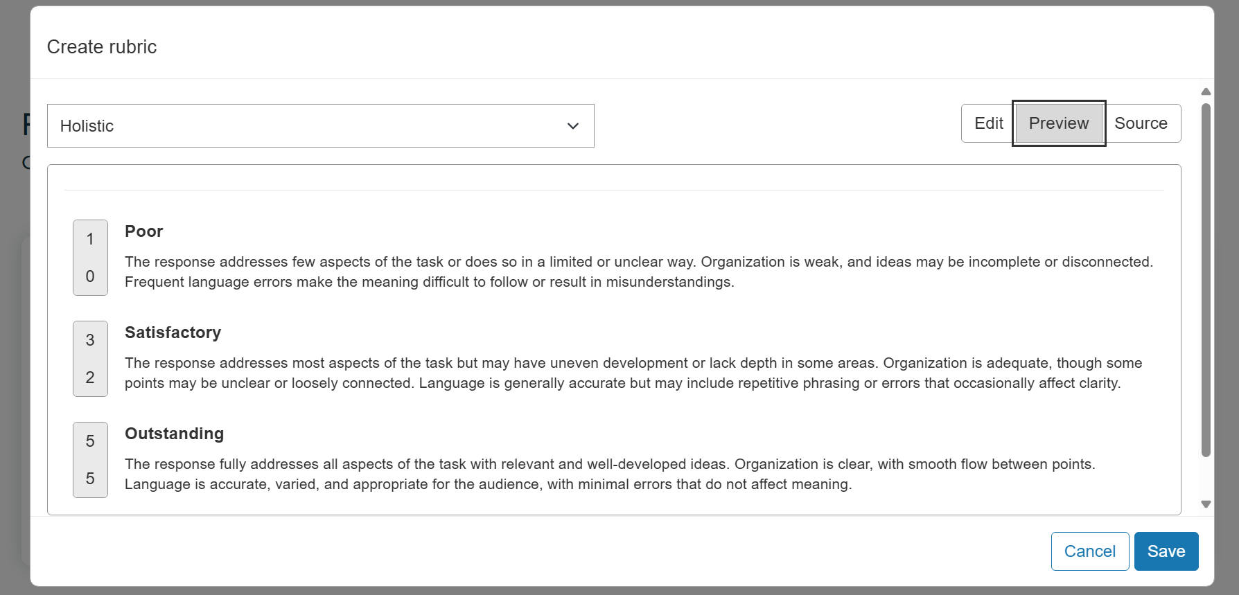 With Rubric Editor API, content authors can easily create and edit rubrics for essay and short response question types. They can preview the rubrics as well as review and copy the rubric json, allowing for simple duplication and storage.
