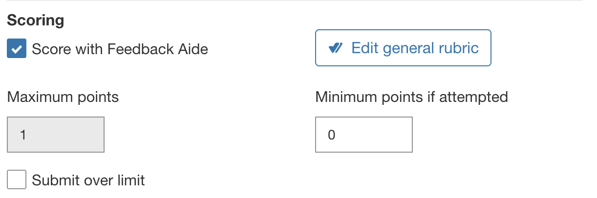 Note: If the option appears but cannot be selected, contact your system administrator to confirm the feature is fully enabled for your environment.Scoring section in the Author API with Feedback Aide enabled