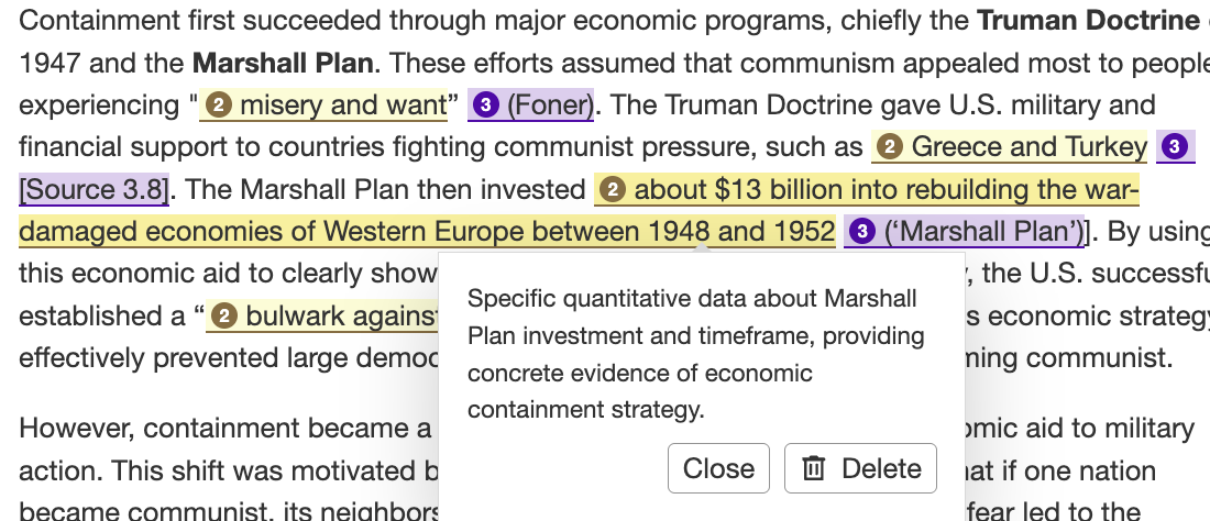 - If the student makes a claim unrelated to the prompt, it will be highlighted and noted.